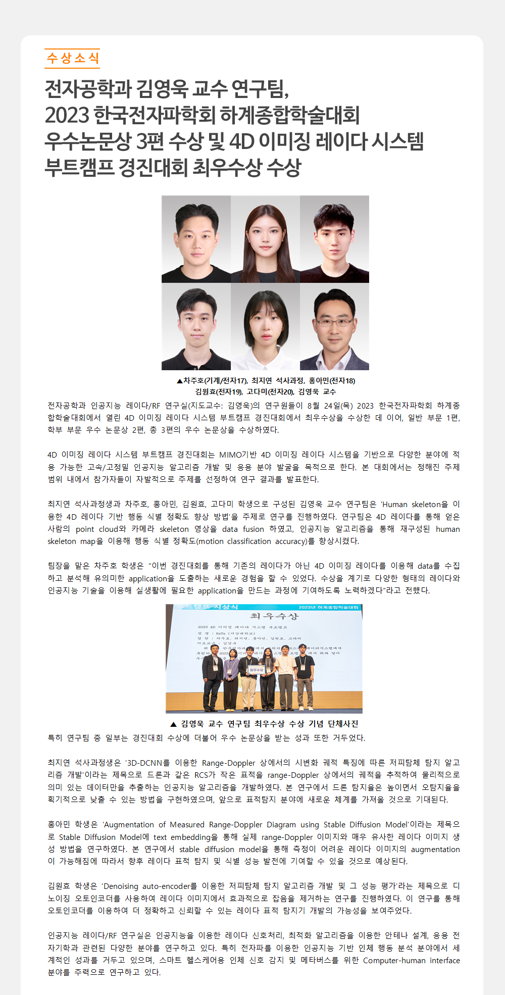 우수논문상 3편 수상 및 4D 이미징 레이다 시스템
