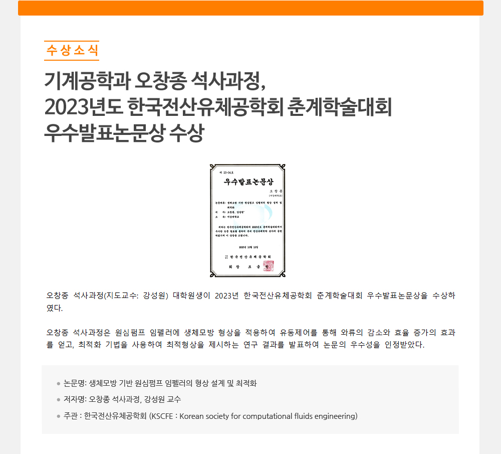 - 기계공학과 오창종 석사과정,
