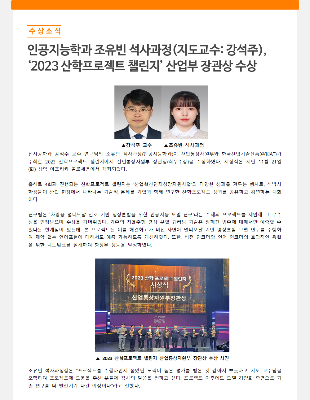 ‘2023 산학프로젝트 챌린지’ 산업부 장관상 수상
