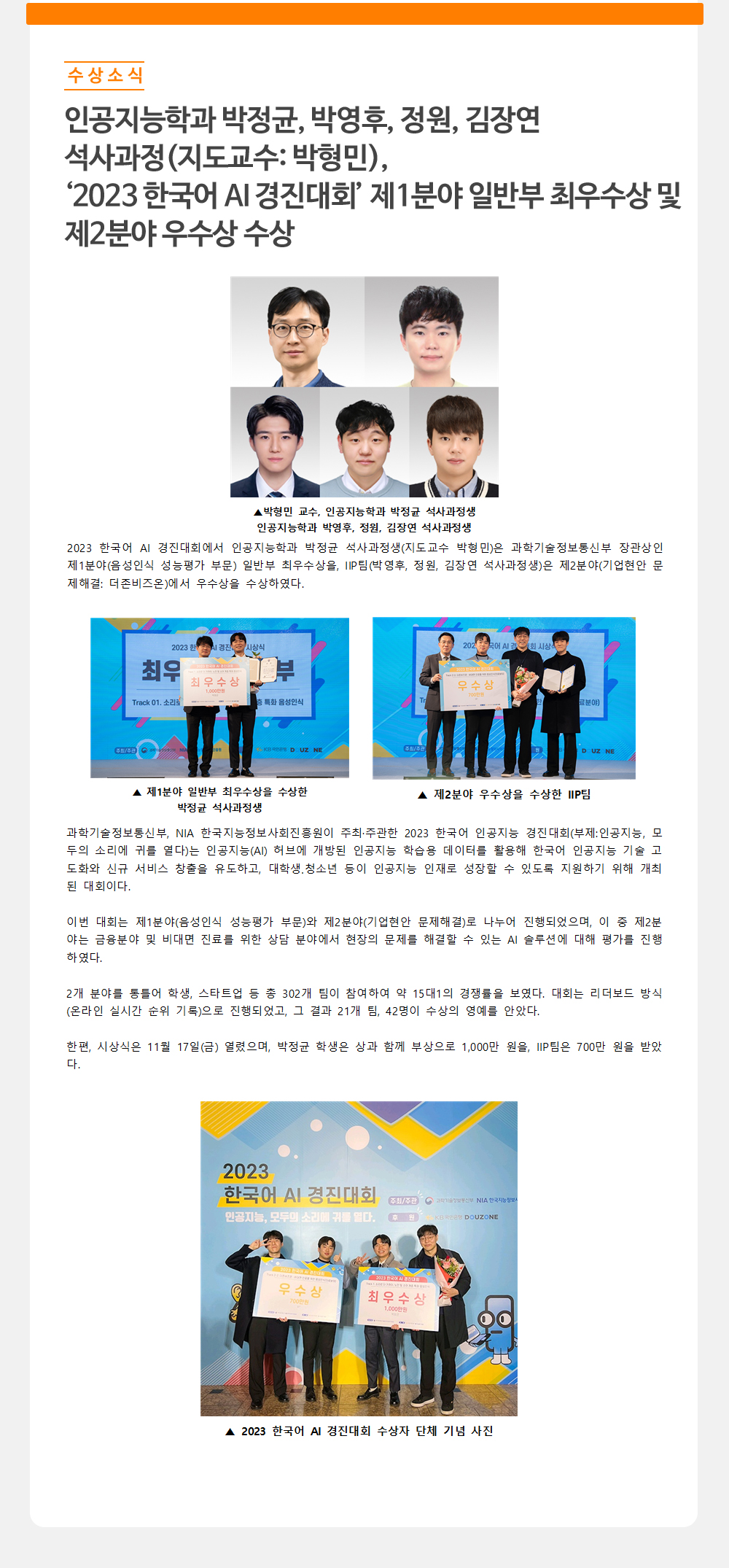 ‘2023 한국어 AI 경진대회’ 제1분야 일반부 최우수상