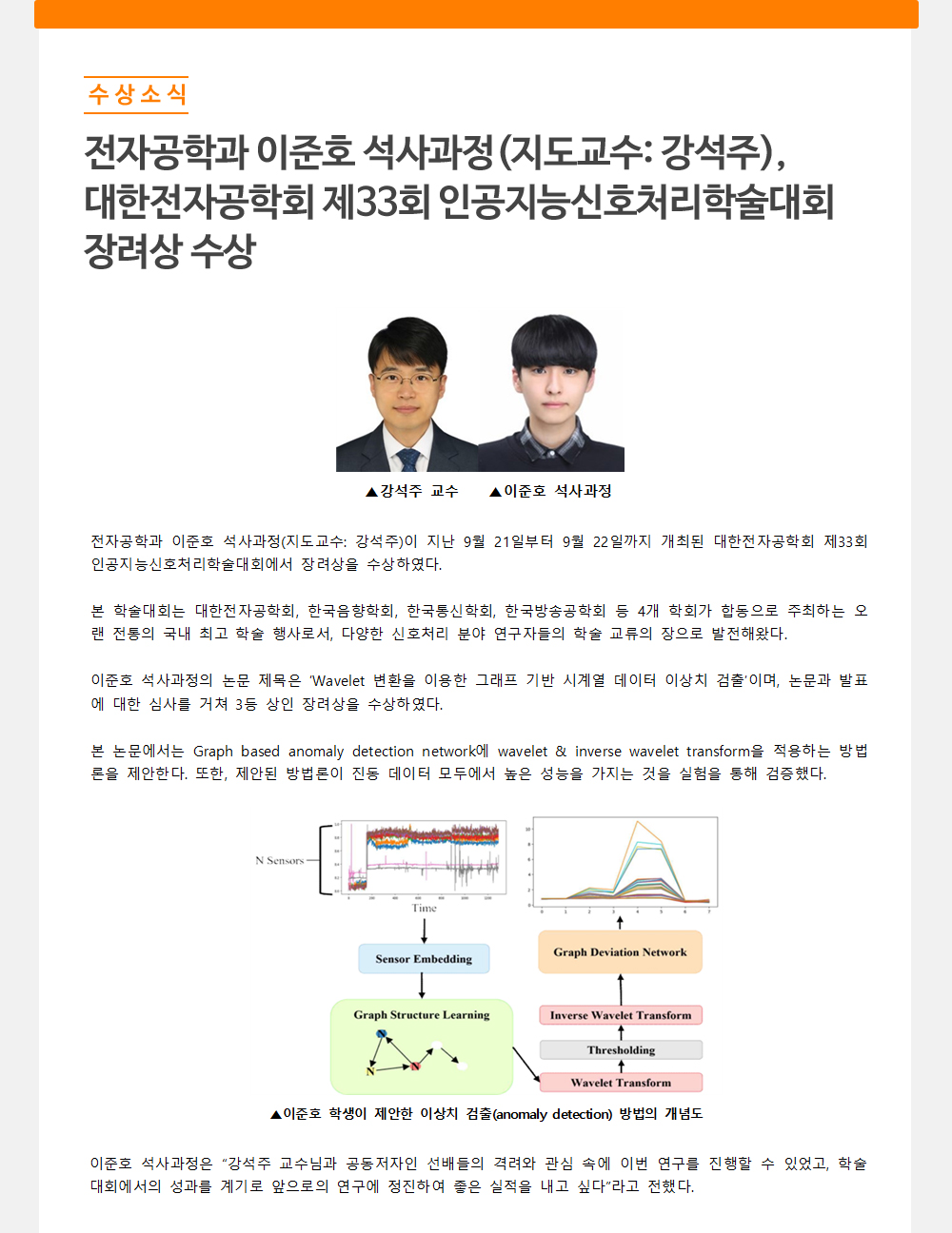 - 전자공학과 이준호 석사과정(지도교수: 강석주),