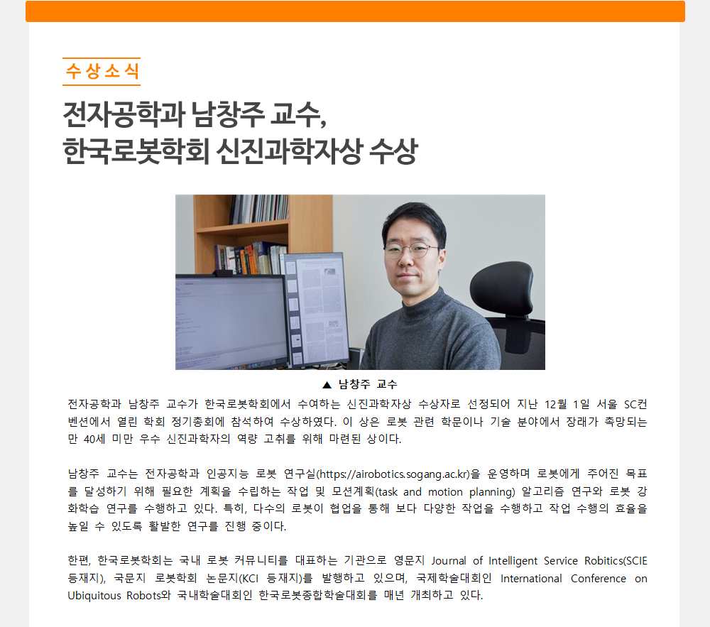 한국로봇학회 신진과학자상 수상