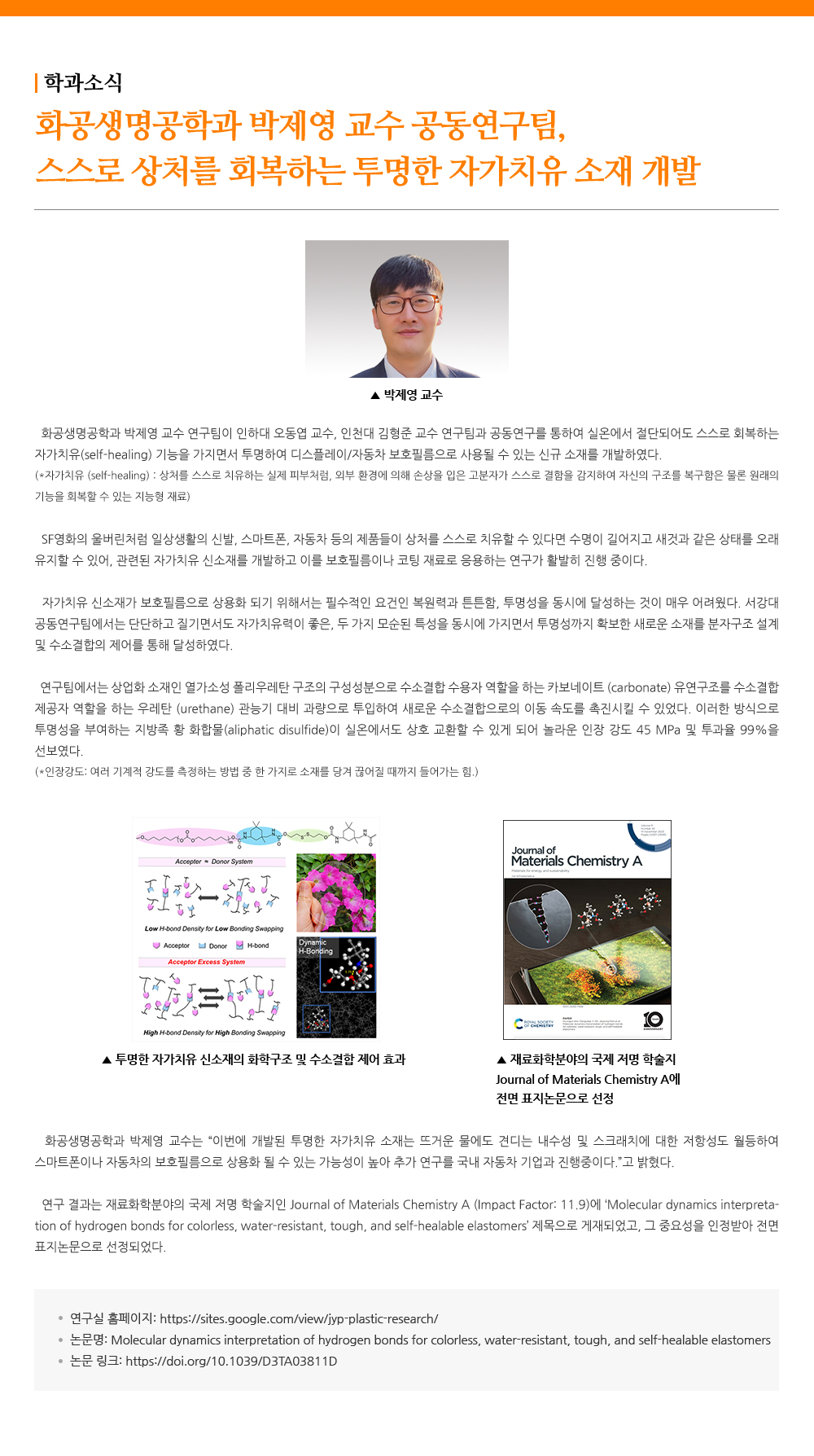 - 화공생명공학과 박제영 교수 공동연구팀,