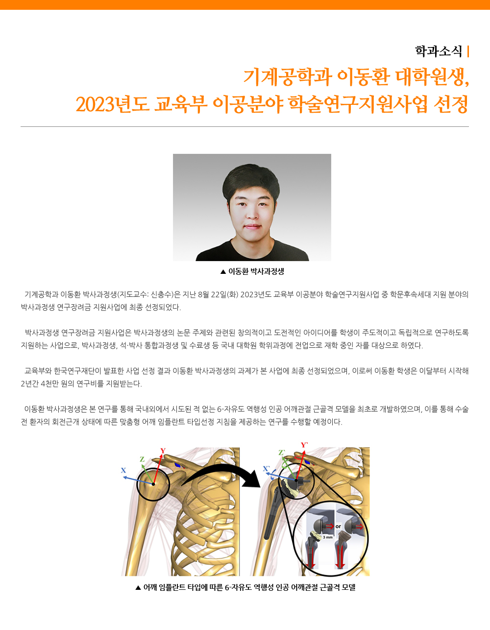 - 기계공학과 이동환 대학원생, 2023년도 교육부