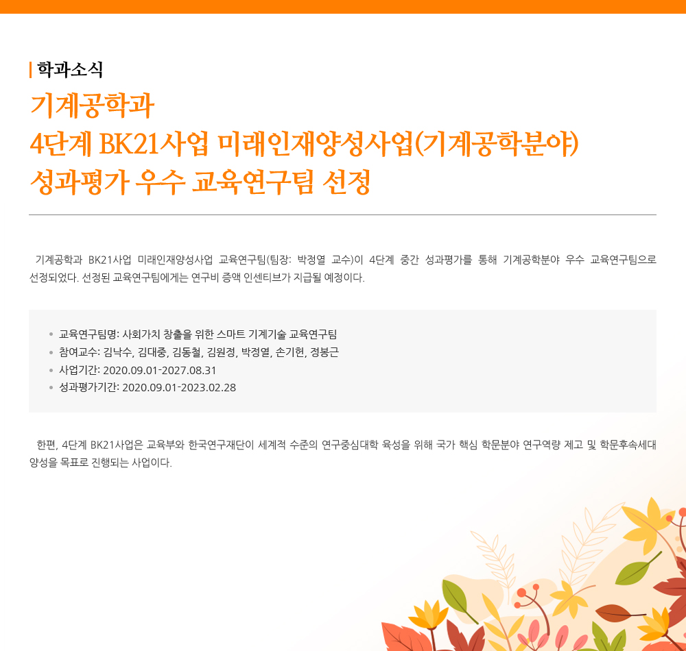 - 기계공학과 4단계 BK21사업 미래인재양성사업
