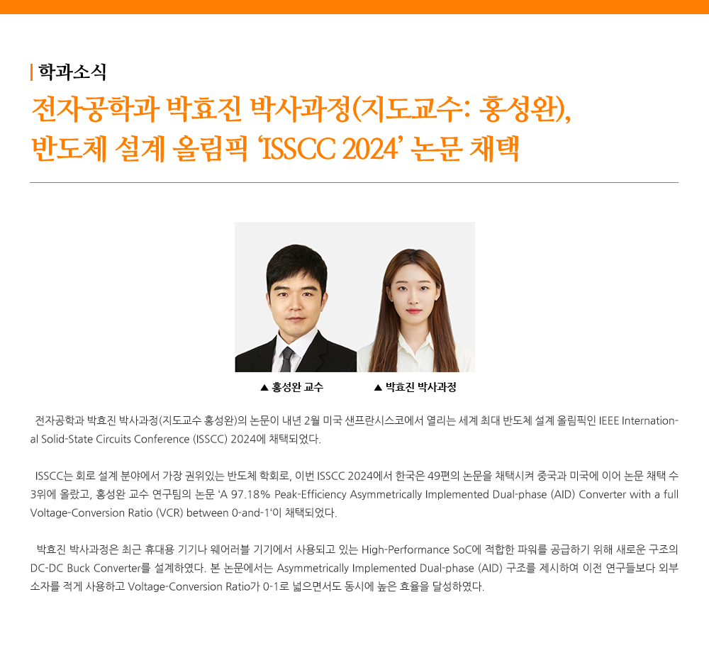- 전자공학과 박효진 박사과정(지도교수: 홍성완),