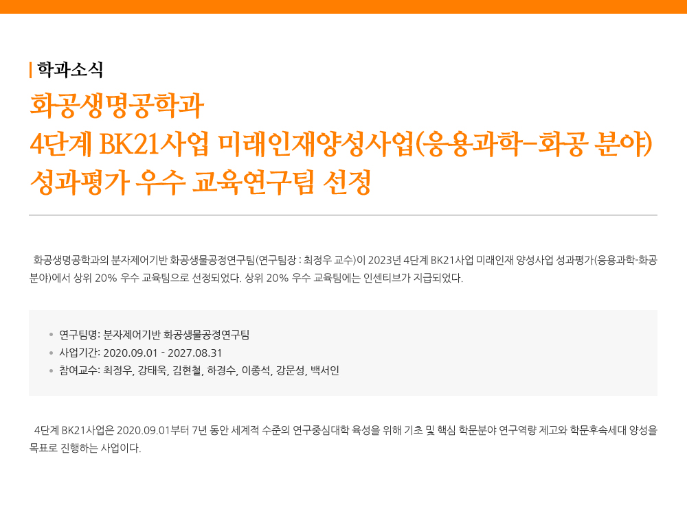 - 화공생명공학과 4단계 BK21사업 미래인재양성사업