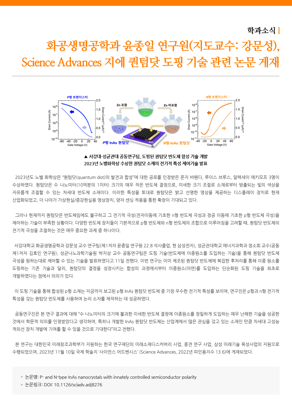 Science Advances 지에 퀀텀닷 도핑 기술