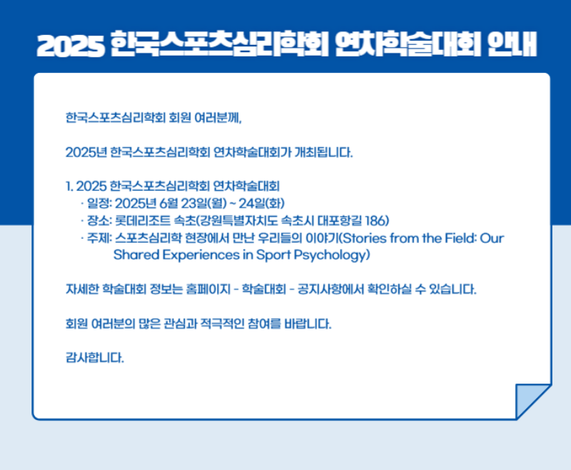 2025년 한국스포츠심리학회 연차학술대회(6/23~24)2025.06.09 | 조회수 : 68 -